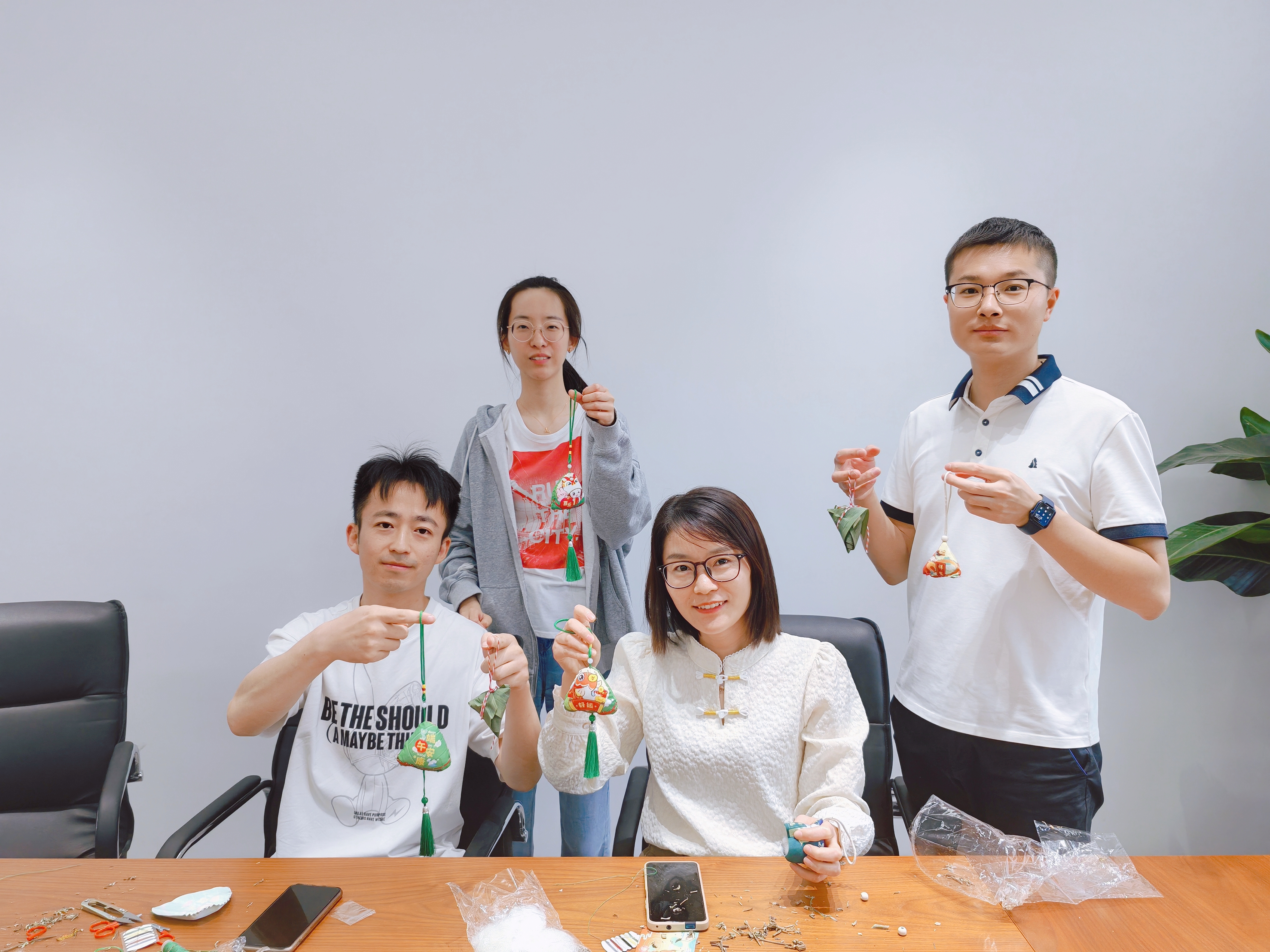 活動(dòng)現(xiàn)場(chǎng)早早準(zhǔn)備好了粽葉、糯米、紅棗、線繩、剪刀等物品。公司職工們圍在桌前,在歡聲笑語(yǔ)中各顯身手。卷粽葉、填糯米、扎線繩……一道道工序有條不紊,大家忙的不亦樂乎。