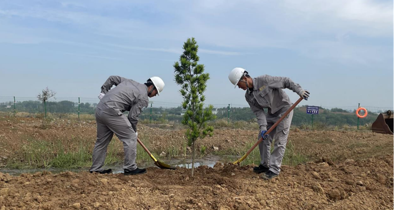 綠色礦山,黨員先行。興天礦業(yè)黨支部深入貫徹落實(shí)習(xí)近平總書記關(guān)于生態(tài)文明建設(shè)重要論述,于9月22日開展了“為礦山增綠、為黨旗添彩”主題黨日活動(dòng)。植樹活動(dòng)現(xiàn)場,黨員干部帶領(lǐng)公司職工分工協(xié)作、互相配合,揮鍬鏟土、扶直苗木、培土圍堰,道道工序一絲不茍,場面熱火朝天。