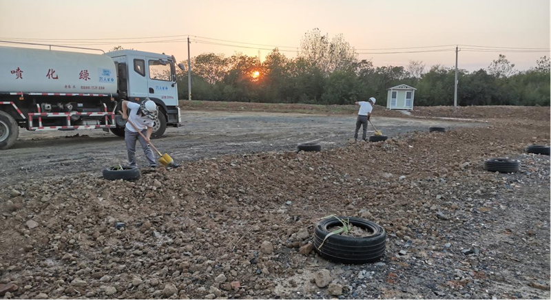 在具備種植條件后,公司陸續(xù)開展移栽樹木、種植花草、澆水養(yǎng)護(hù)等工作。經(jīng)過一個(gè)多月的努力,原本荒蕪的礦區(qū)已經(jīng)悄然發(fā)生變化,路邊播撒的草種和格桑花都已發(fā)了芽。放眼望去,一抹抹淡綠色生機(jī)盎然。
